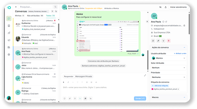 conversas de múltiplos canais, automatizando respostas, integrando com ferramentas de gestão e