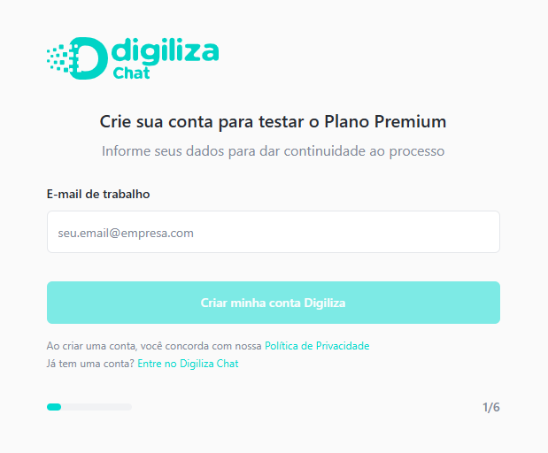 Teste o Digiliza® Chat por 14 dias, sem compromisso e sem precisar de cartão de crédito.