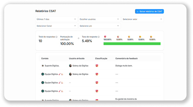 Tenha uma visão clara e completa do desempenho da sua equipe, dos canais de atendimento e da satisfação dos seus clientes. Tudo isso com relatórios que são gerados automaticamente no painel do Digiliza Chat.